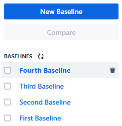 To delete a baseline, click on the trash can icon next to the baseline name in the list.