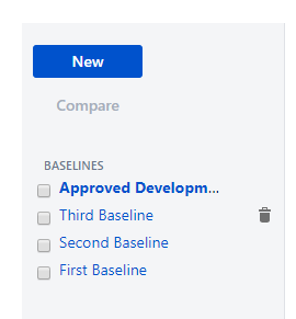 To delete a baseline, click on the garbage bin icon next to the baseline name in the list.