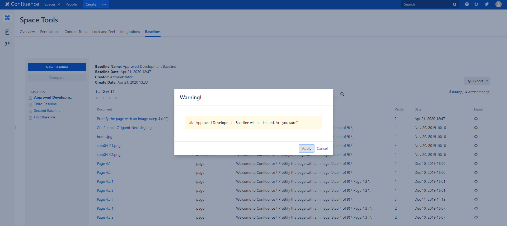 - Click "Apply" if you are sure that you want to delete the baseline.