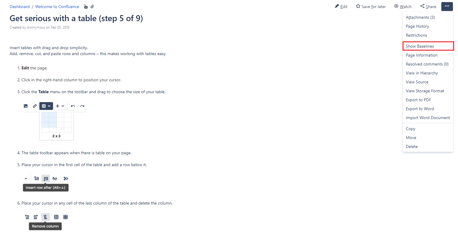 - Open the "Baselines" tab in Space Administration section of your Confluence space.