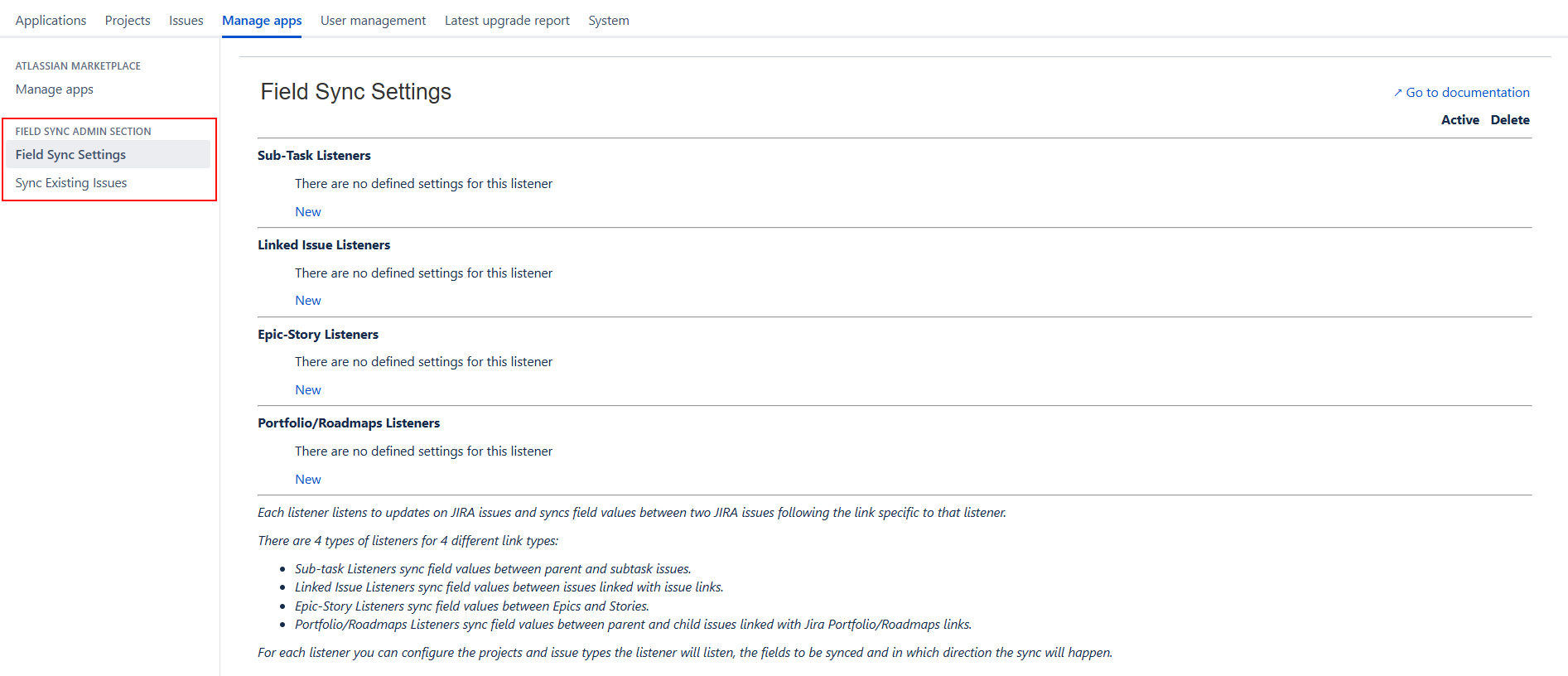 Once you install Field Sync, a new section called "Field Sync Admin Section" is added to Administration >> Manage Apps menu. To configure Field Sync, click on "Field Sync Settings".