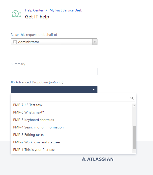 JQL Advanced Select field in JSD customer portal in Dropdown Mode