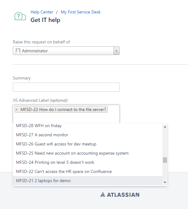 JQL Advanced Select field in JSD customer portal in Label Mode