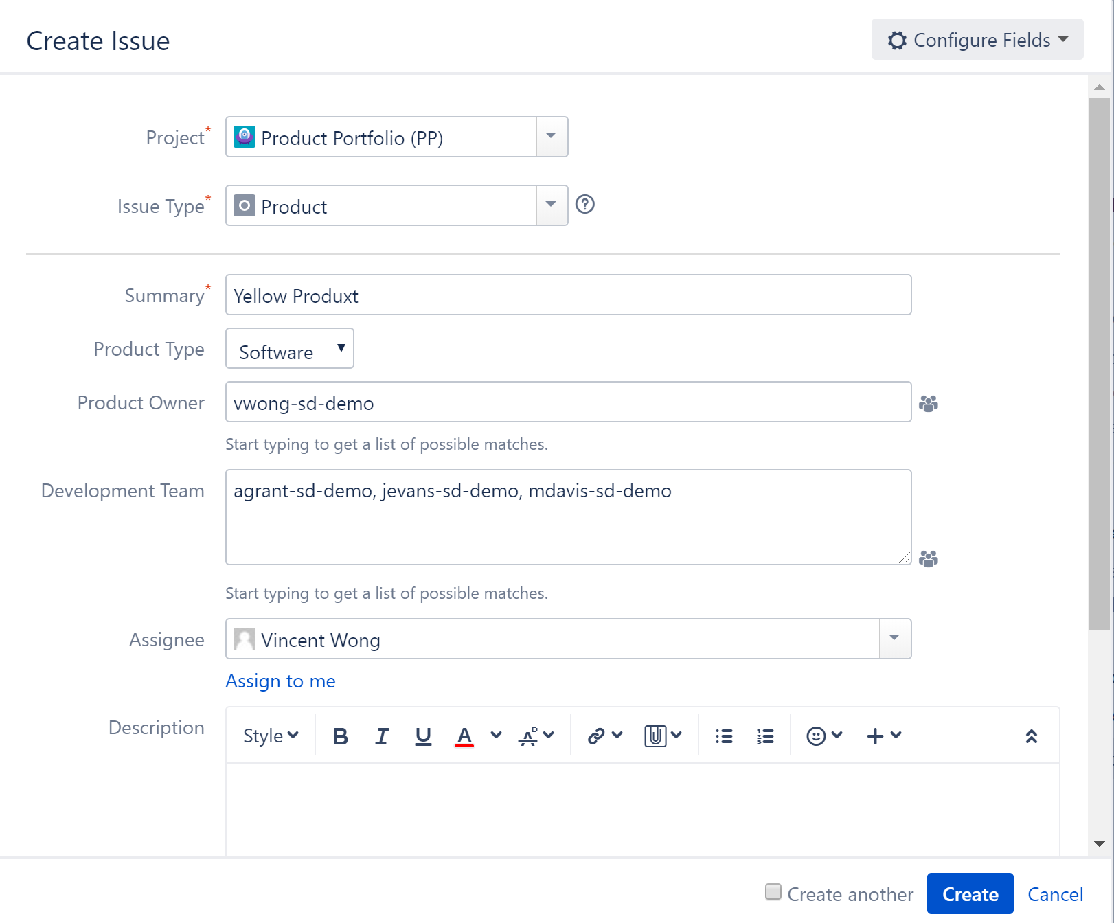 - You can change the View Pattern setting of your Product field as "{issue.summary} owned by {issue.cf_12345.displayname}" to allow users to see the product owner name in the pick list as well. (12345 is the field ID for Product Owner field in the example above) (see Tokens Reference)