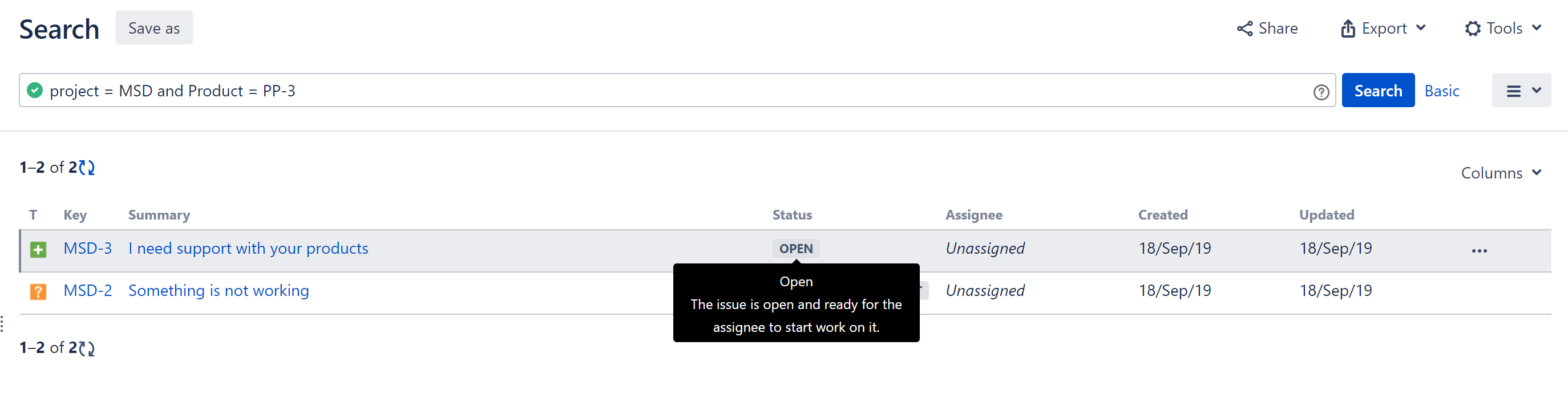Then create a JQL Advanced Select custom field named Product. This field will be used to link your Jira issues to your products. (see JQL Advanced Select Field )