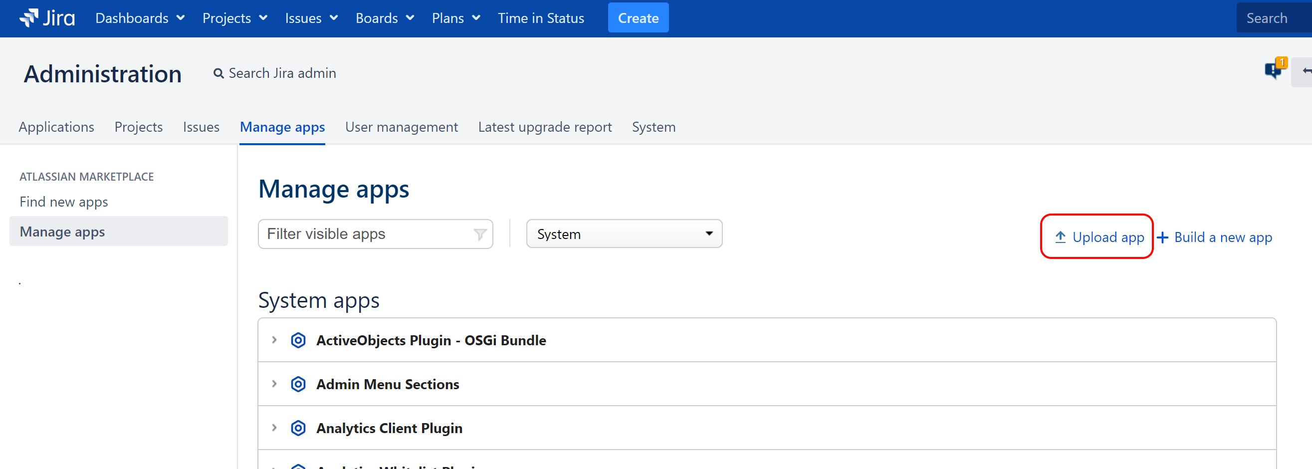 - Upload the .jar executable file that you have downloaded from the Atlassian Marketplace.