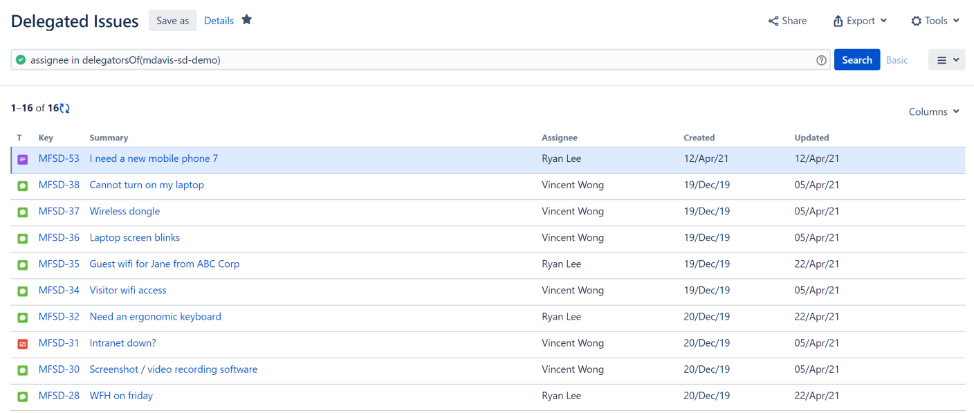 These JQL functions allow you to filter issues based on delegations defined on the Delegation Configuration page.