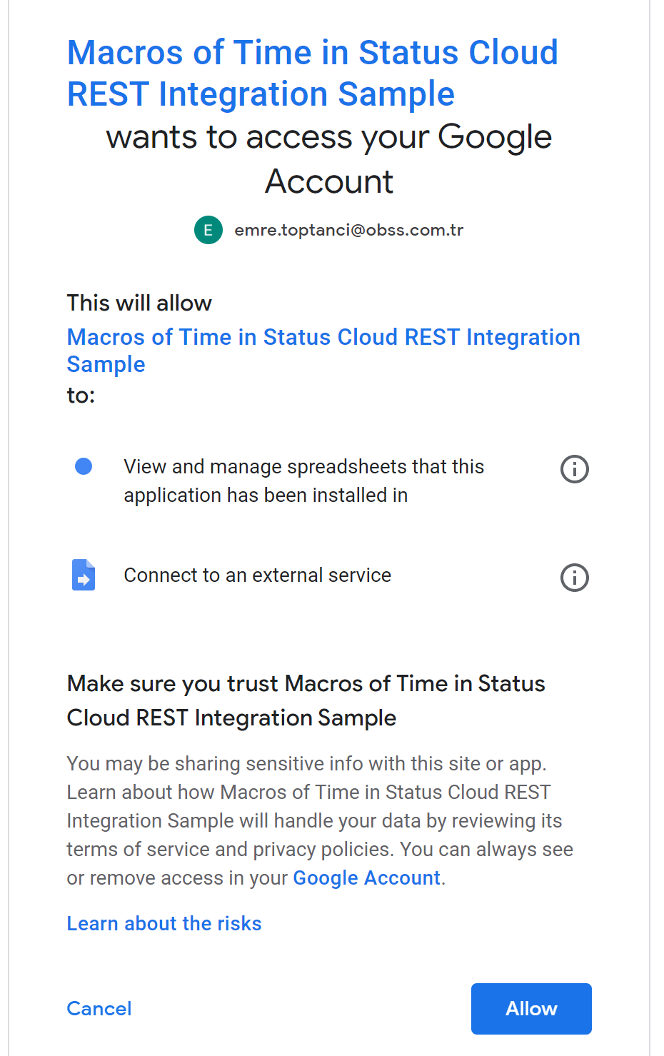 When you click on the RUN button for the first time, Google will ask for some permissions from you. You need to allow the execution of the script for this file to work.