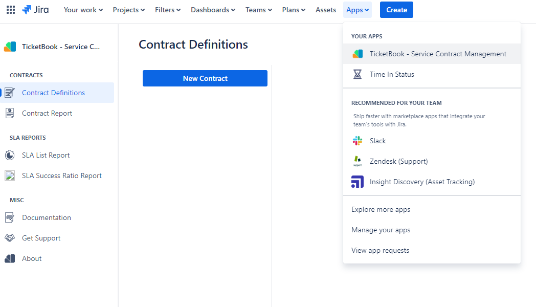 To access the app, just click the TicketBook link in the Apps menu which will take you to TicketBook Contract Definitions screen..