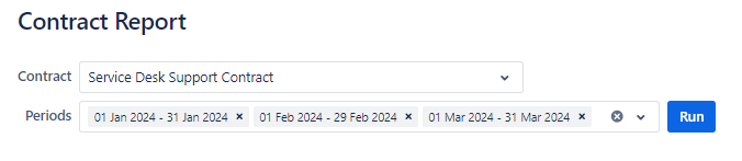 To run the report, the user just needs to select an existing contract and one or more periods in that contract.