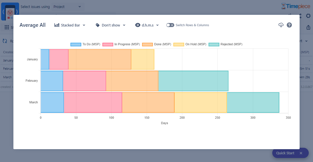 If you want to see percentage calculations in the charts,  Timepiece offers multiple options for this.