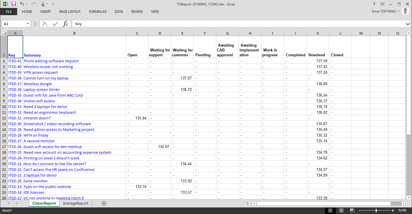 All data included in the report can be exported in XLS, XLSX or CSV file formats. To export data simply click on the export icon and select the desired format. The prepared export file should be downloaded in a short time.