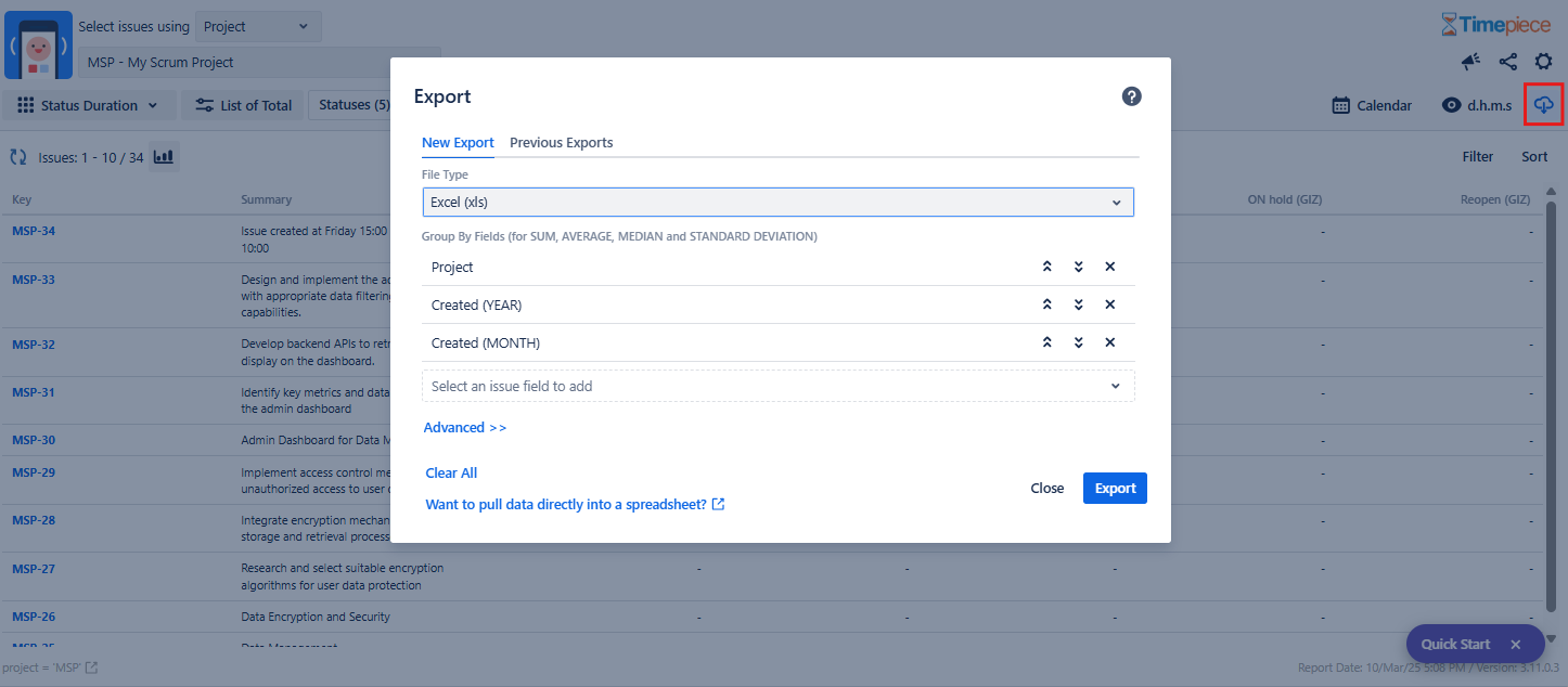 - You can select system or custom fields on the issue as grouping fields.