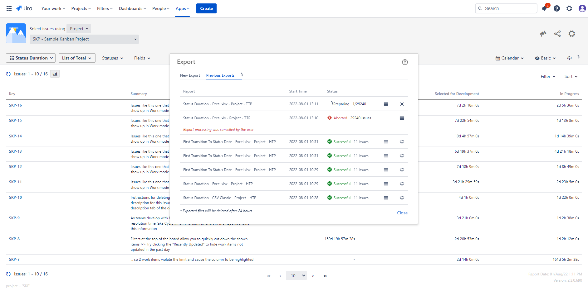 You have 24h to download your export files. Exported files will be deleted after 24h.