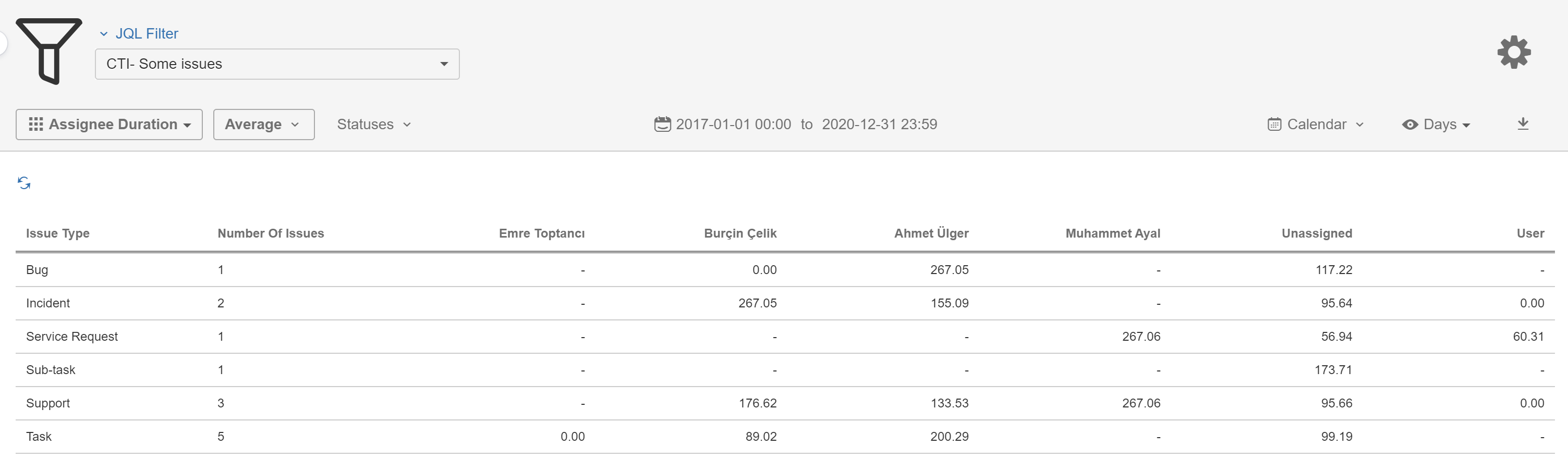 If, instead of looking at individual issues, you want to get the average durations to see the overall picture, you should: