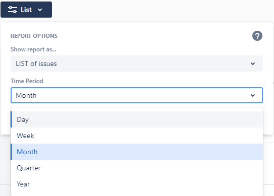 The Time-Period selection is available for Status Duration per Time-Period and Time-Period Duration per Status report types. This option can be set as Year, Quarter, Month, Week, Day. The selection affects how the time-periods in said reports are grouped.