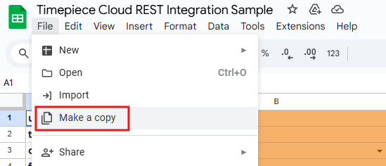 You can use this Sample Google Sheets Document to get data from Timepiece Cloud using REST API.
