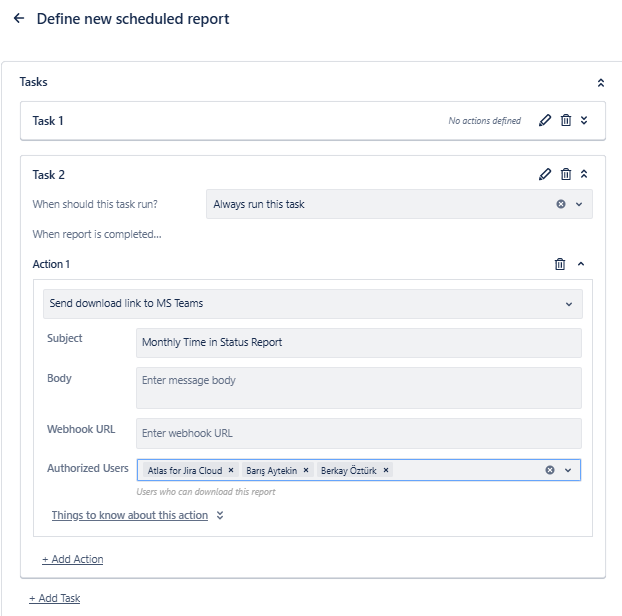 The Authorized Users are Jira users who will be allowed to use the link to download the generated file.