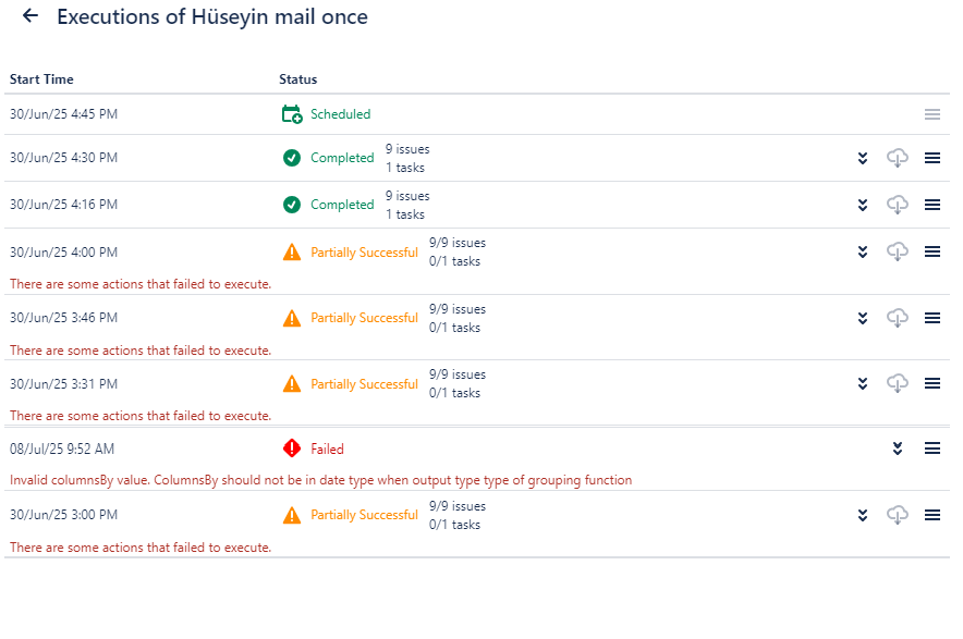 If the report execution fails, no download link will be generated. In that case, an error message will be shown in the execution history.