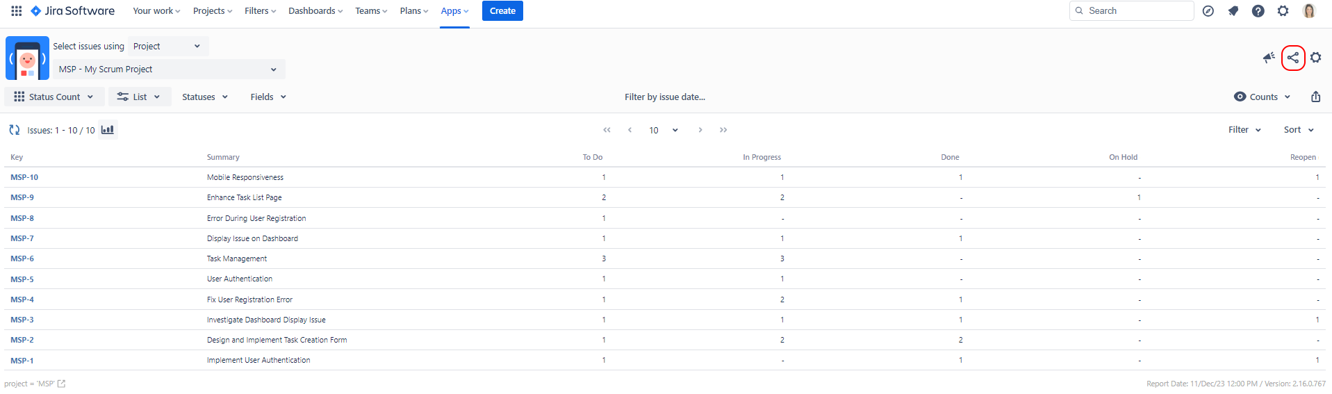 Anyone who follows this link will arrive at a report with the same parameters but will see the report and its content according to his/her permissions on the system.