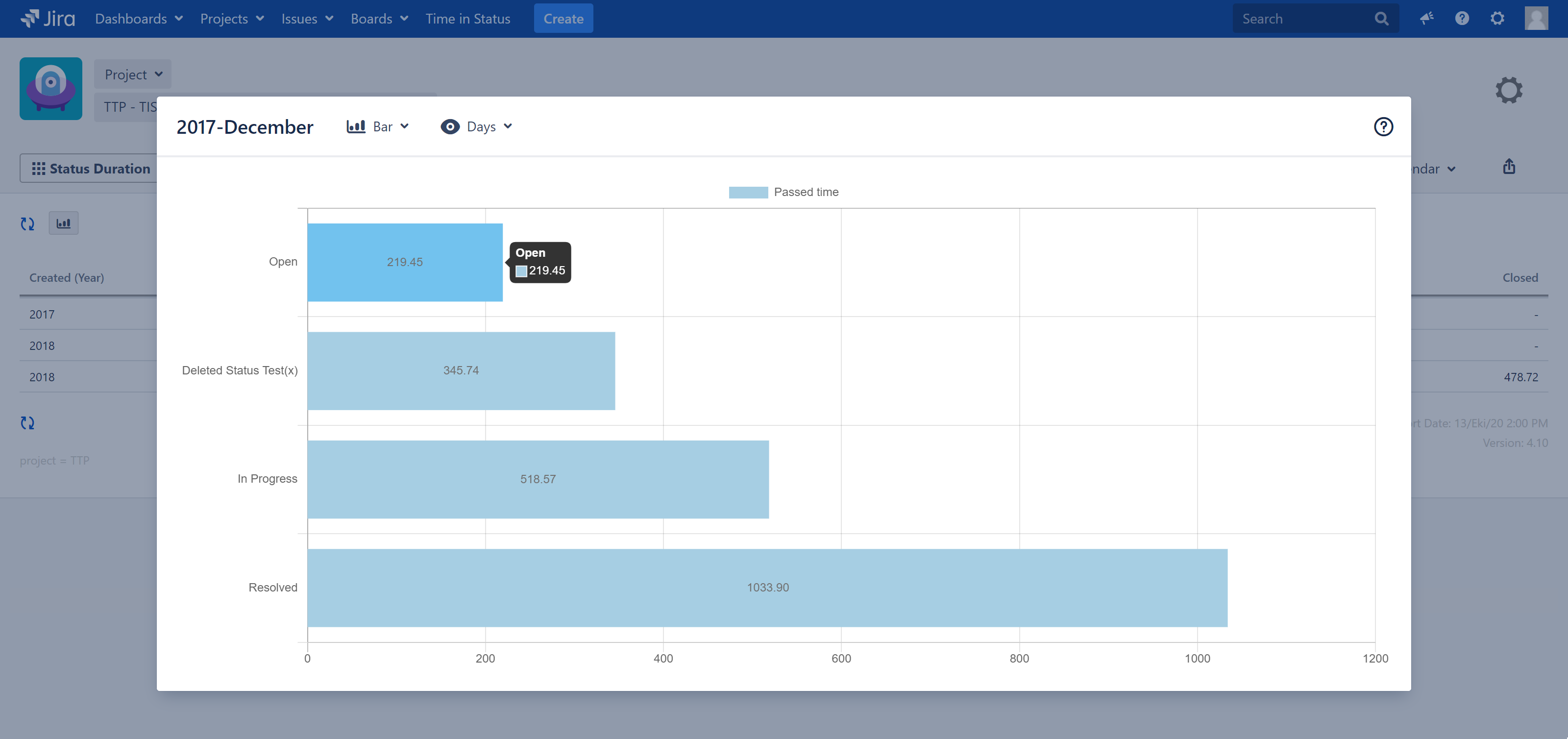 To overcome this you can use the Exclude Current State checkbox. When checked, this option causes the status/assignee duration since the last change in issue history to be excluded from the report. This way charts display much more useful output.
