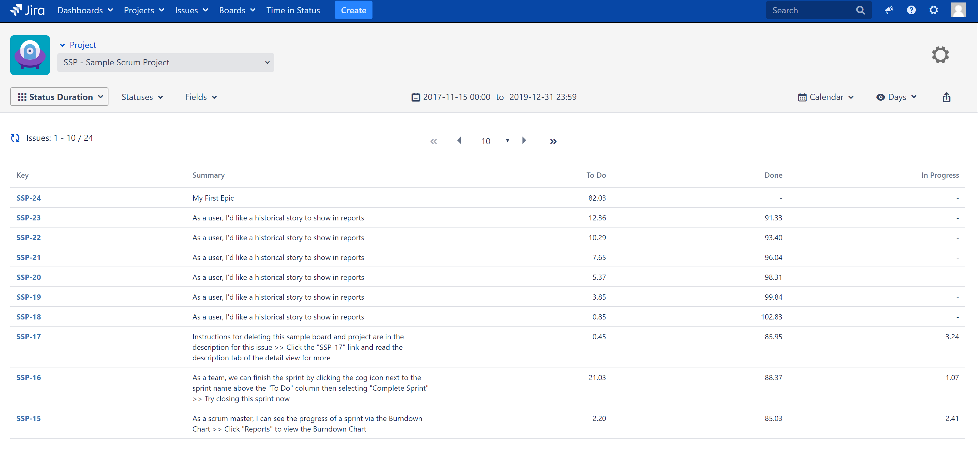 When you open Time in Status report page from Jira menu you will see that Time in Status gives you various parameters to shape the report output:
