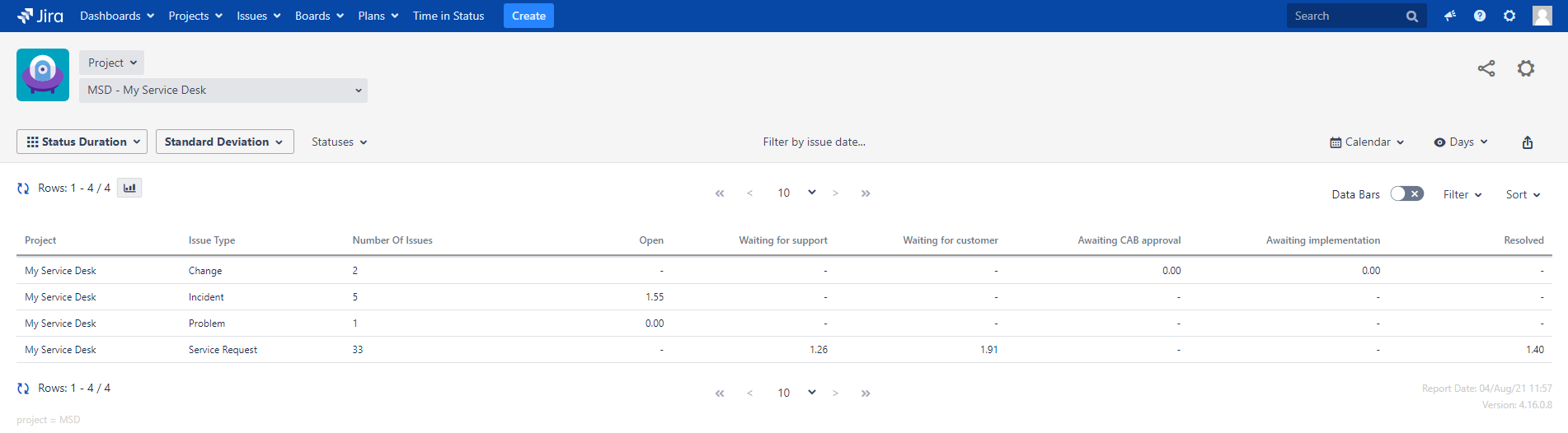 This means in most cases, the average of a consolidated column will NOT be equal to the sum of averages of all statuses under it. Only in a case where all issues have a value for all statuses, the sum of averages for statuses should be equal to the average of the consolidated column. If there is at least one empty value in the report, it won't be.