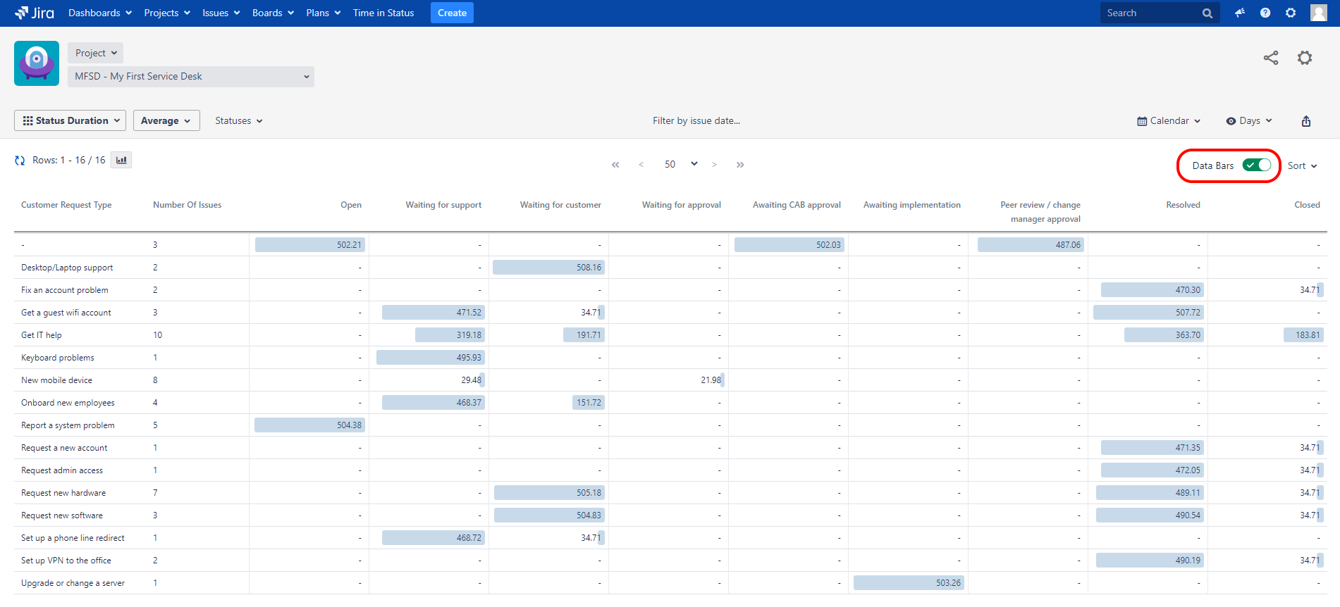 Data Bars are available for numeric report types and can be enabled using the switch with the same name on the toolbar.