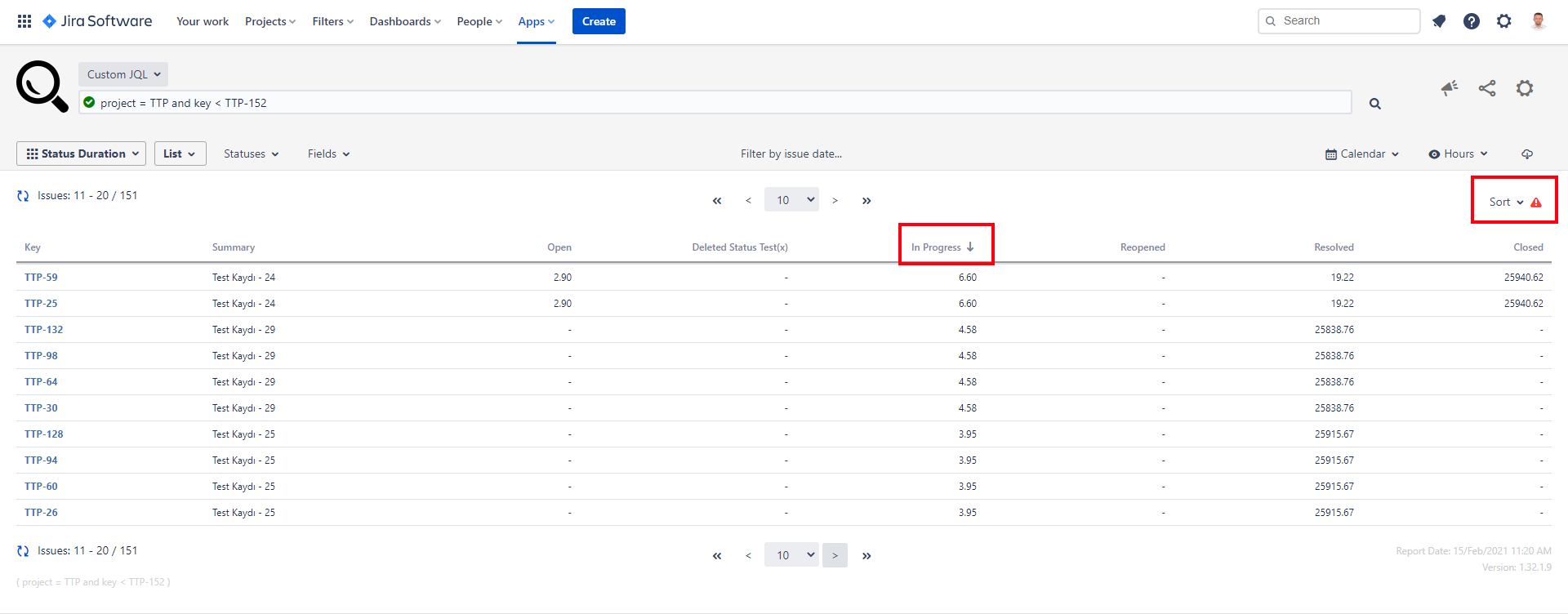 If no statuses are selected in Status panel, all statuses in your Jira will be listed here for sort. If you select a status that is not present in the report output, the sort will have no effect.