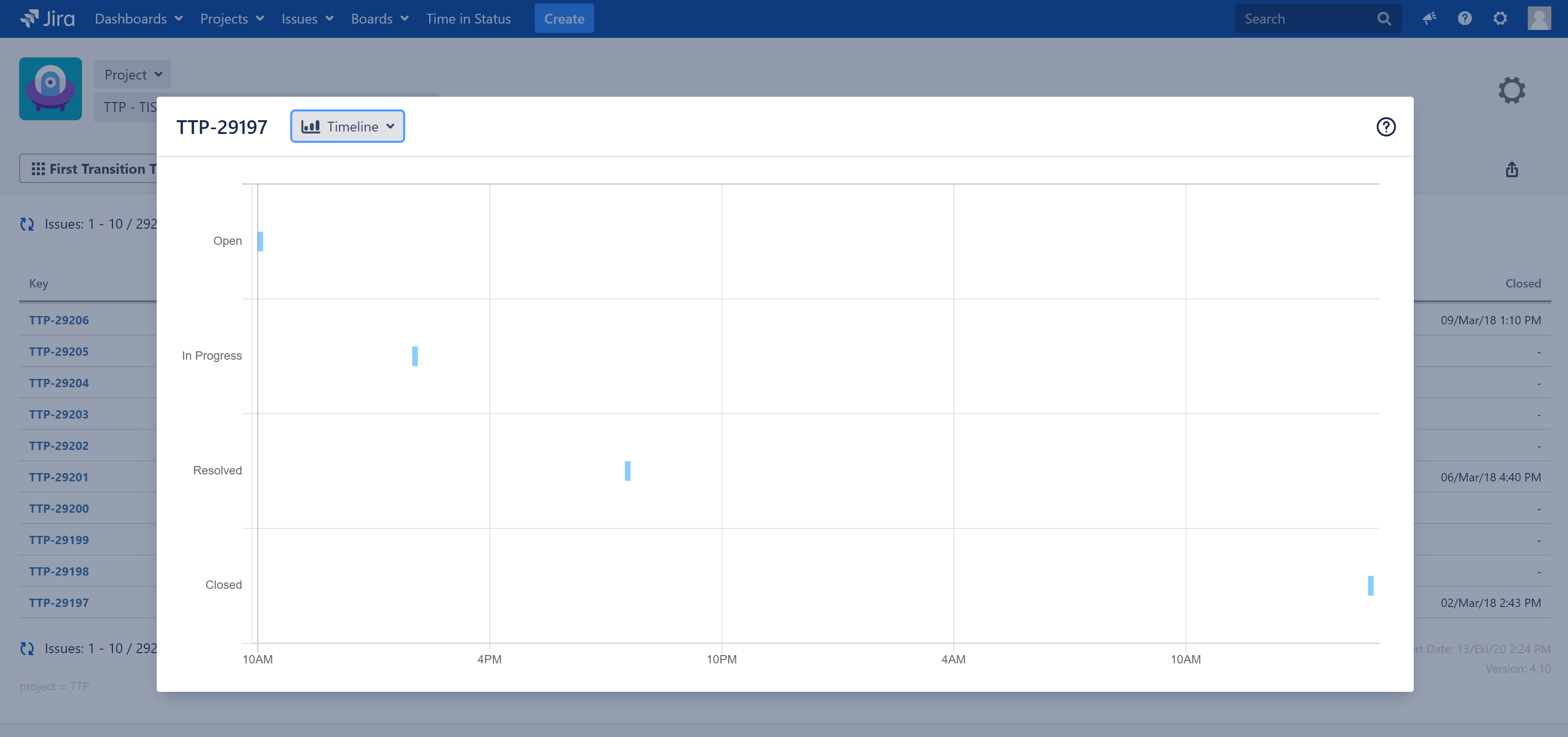 If you are looking at an issue that hasn't been updated for a long time (for example the issue was closed months ago), the charts will be completely dominated by the latest state of the issue and earlier statuses/assignees will not be distinguishable in the chart.