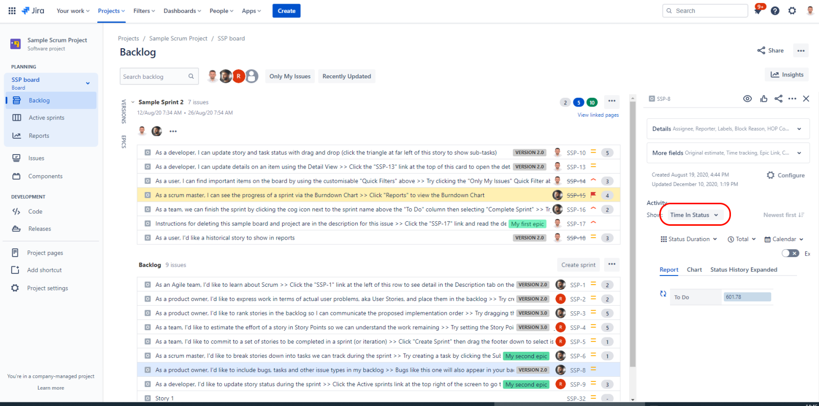 Backlog View of a Jira Board