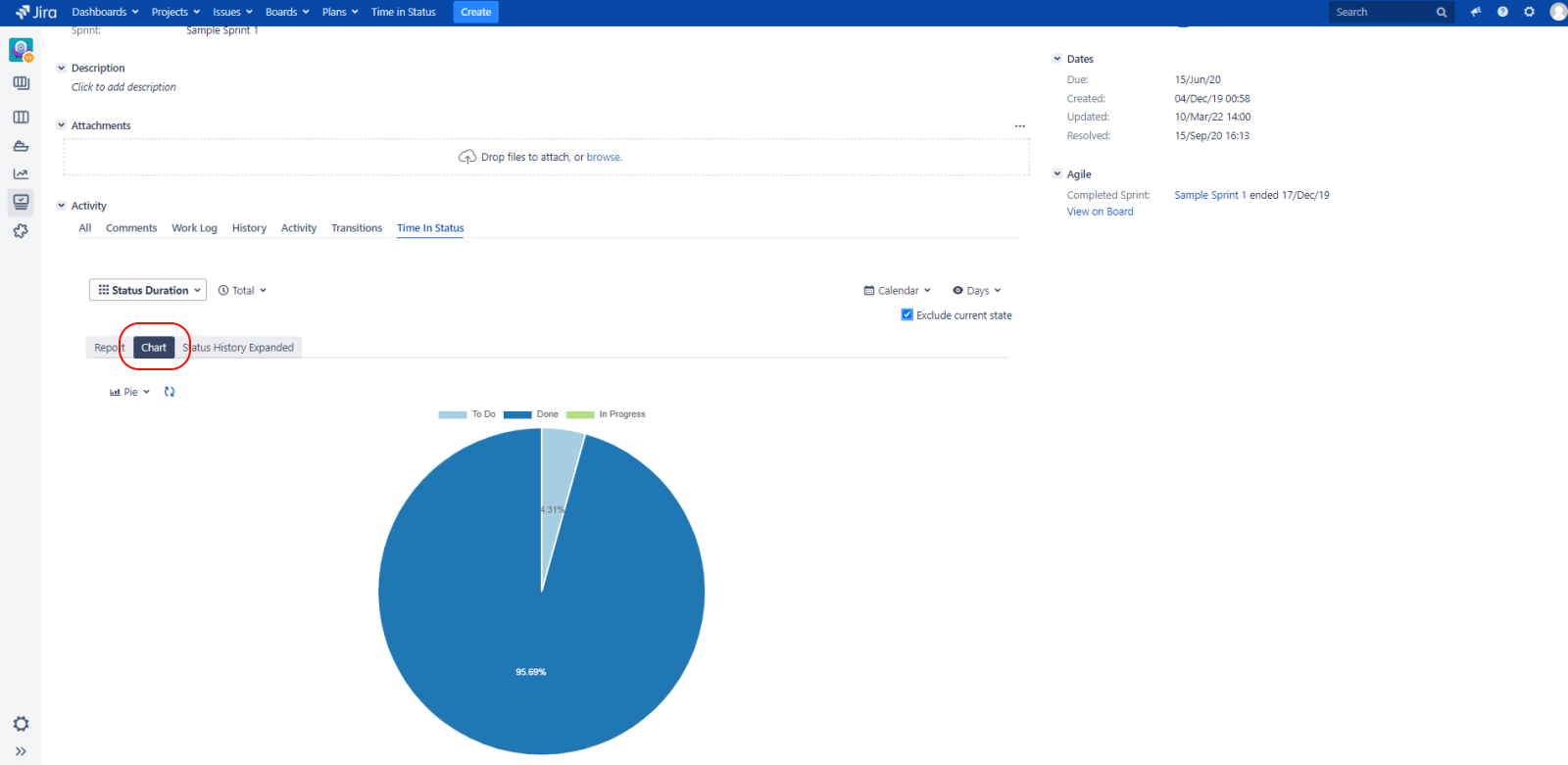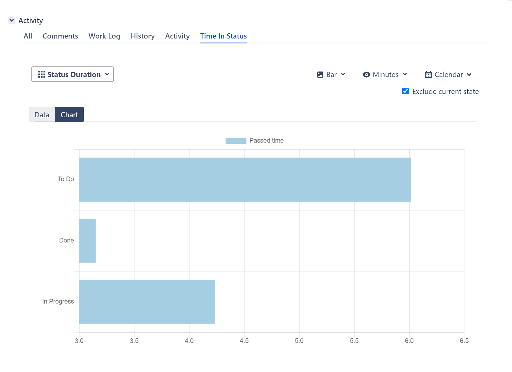To overcome this you can use the Exclude Current State checkbox. When checked, this option causes the status/assignee duration since the last change in issue history to be excluded from the report. This way charts display much more useful output.