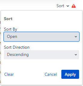 Clicking this button will open a panel that lets you select the sort field and sort direction.