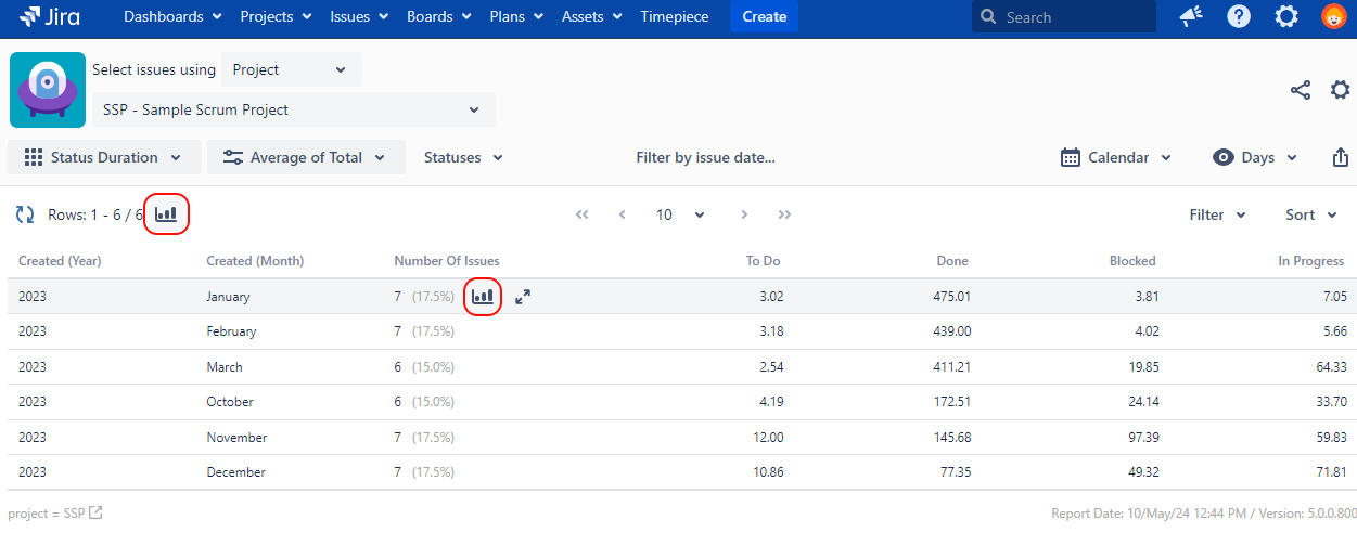 To overcome this you can use the Exclude Current State checkbox. When checked, this option causes the status/assignee duration since the last change in issue history to be excluded from the report. This way charts display much more useful output.