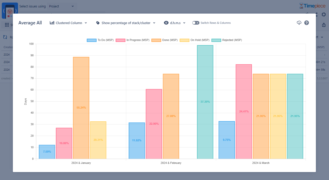 If you want to see percentage calculations in the charts, Timepiece offers multiple options for this.