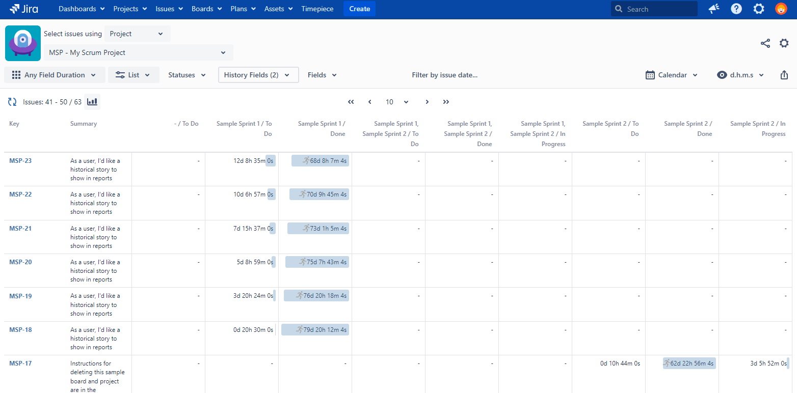 For example you can select Block Reason field from History Fields. And your issues which has one or more Block Reason field value in its history will be shown on the screen as a column. As a result, you will be able to see how much time your issues spent on each Block Reason.