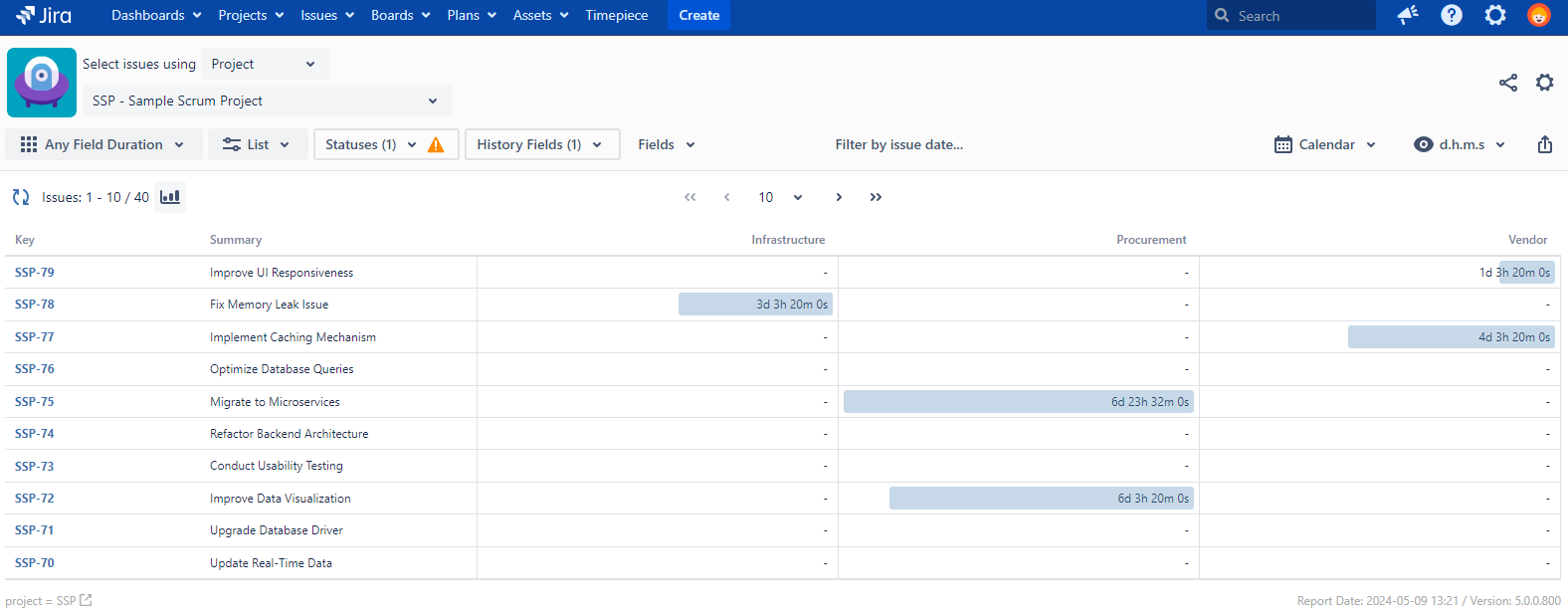 Any Field Duration Report is the most advanced report type for durations. It allows you to see how long each issue field held each value. It helps you identify many different wait times in issue workflow, without having to define a status for them.