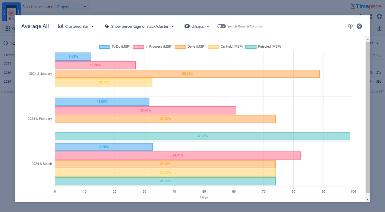 If you want to see percentage calculations in the charts, Timepiece offers multiple options for this.