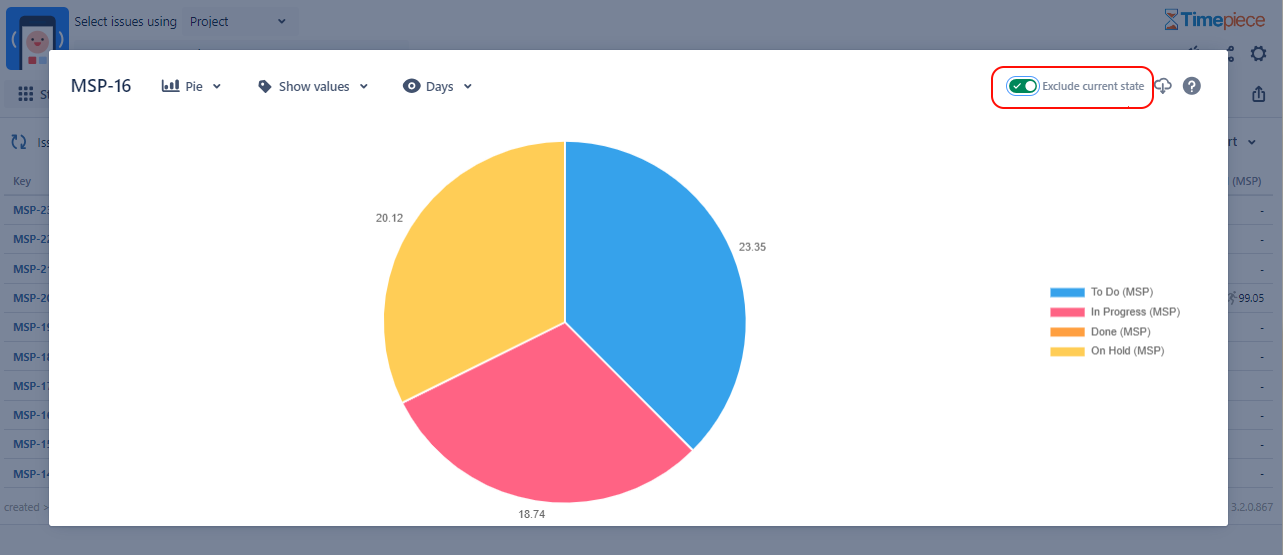 To overcome this you can use the Exclude Current State checkbox. When checked, this option causes the status/assignee duration since the last change in issue history to be excluded from the report. This way charts display much more useful output.