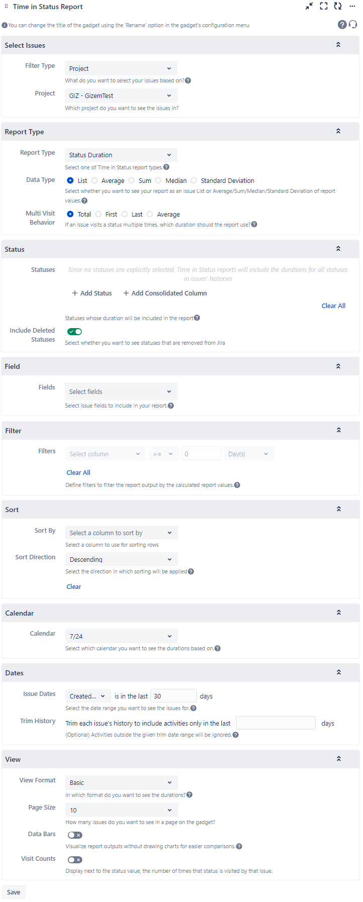 In order to get reports via the gadget, you must first configure and save the gadget settings.