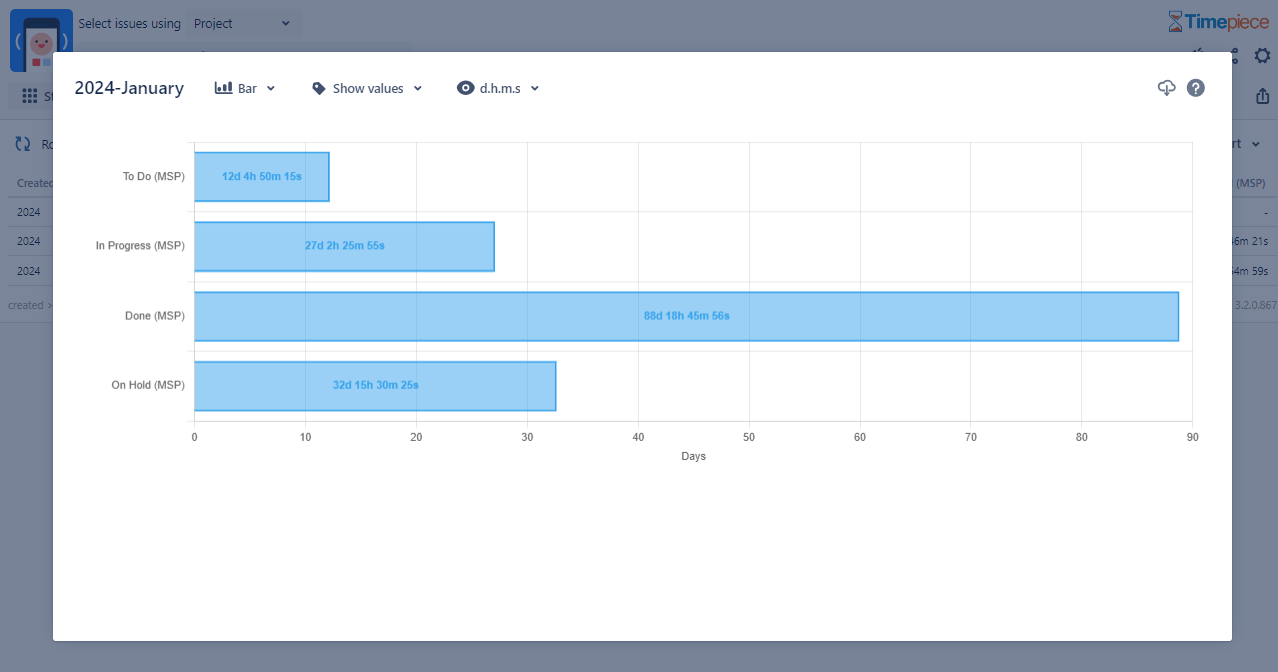 To overcome this you can use the Exclude Current State checkbox. When checked, this option causes the status/assignee duration since the last change in issue history to be excluded from the report. This way charts display much more useful output.