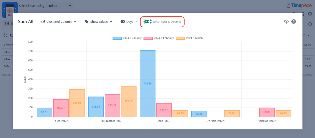 To use this feature, simply click the "Switch Rows & Columns" button on your chart. The chart will automatically update to reflect the new orientation. Click the button again to revert to the original view.
