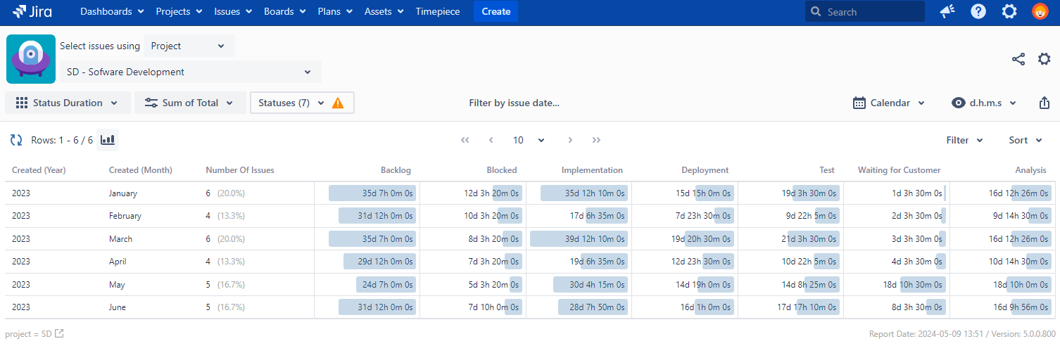 This means when the NON-EMPTY option is selected, the average of a consolidated column will most likely NOT be equal to the sum of averages of all statuses under it. (If all issues have a value for all statuses then it will be. If there is at least one empty value in the report, it won't be.)