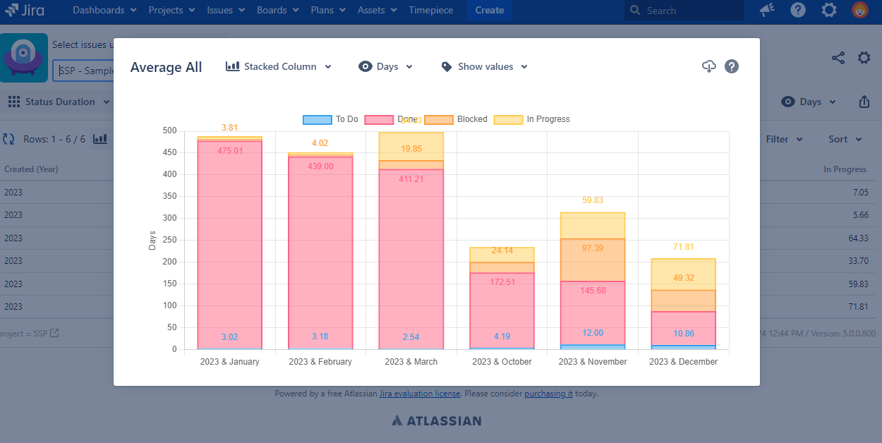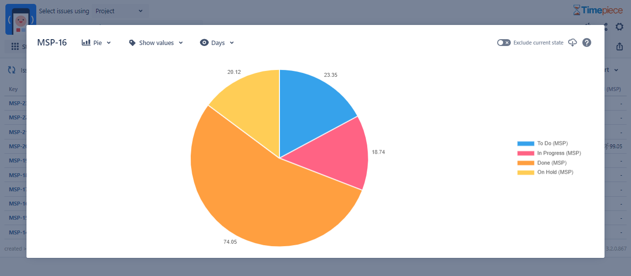 To overcome this you can use the Exclude Current State checkbox. When checked, this option causes the status/assignee duration since the last change in issue history to be excluded from the report. This way charts display much more useful output.
